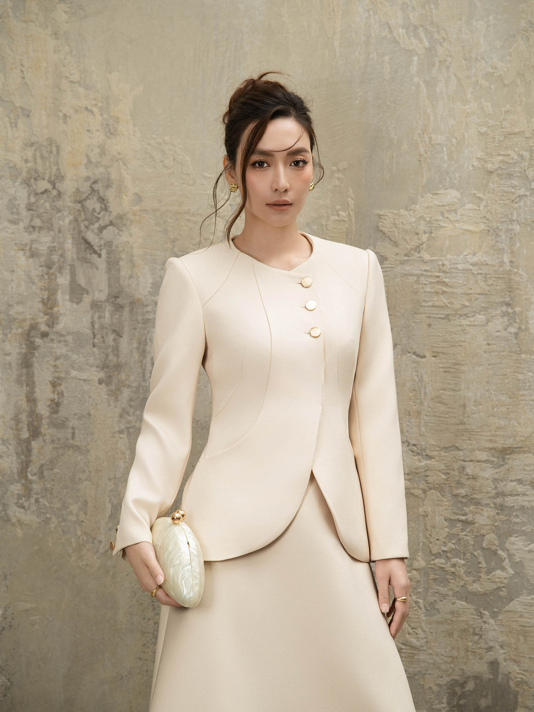 Chi tiết: Áo kiểu cổ V, tay dài, cổ văn trang trí dây