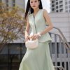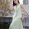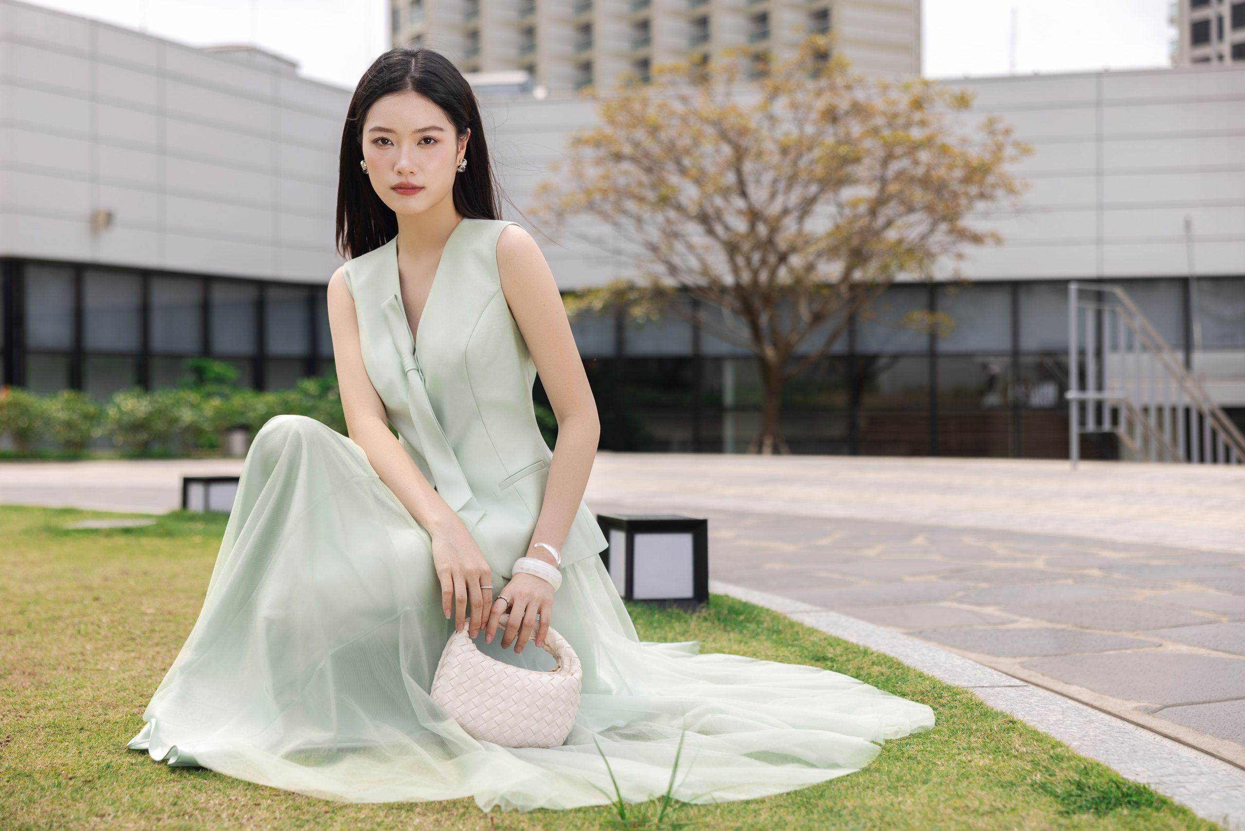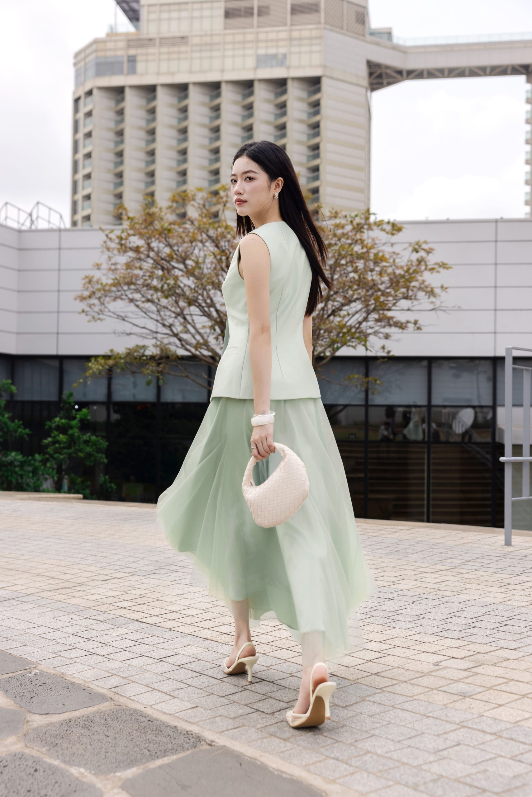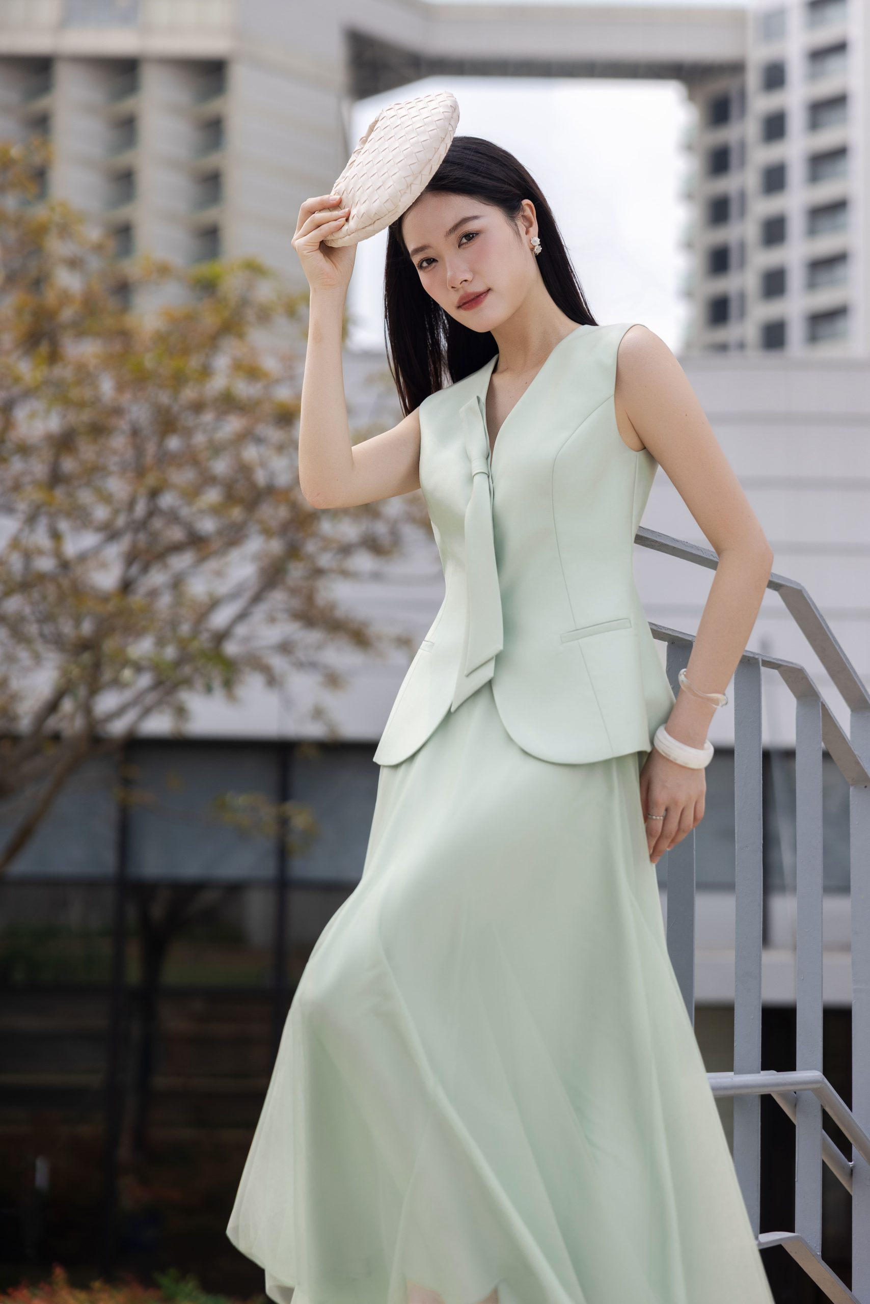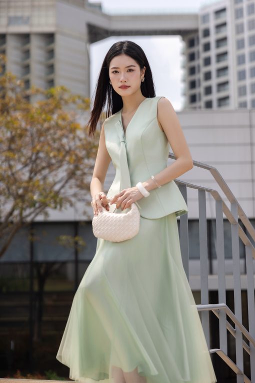5. Mô tả: Kỹ thuật đánh phồng hông là sự thấu hiểu sâu sắc về hình thể, khéo léo định hình đường cong mềm mại để tôn vinh trọn vẹn nét đẹp tự nhiên. Điểm nhấn dây nơ nơi cổ áo không chỉ mang lại vẻ duyên dáng mà còn gợi mở về một tâm hồn nhẹ nhàng, luôn tìm thấy sự lãng mạn và niềm kiêu hãnh trong từng khoảnh khắc thường nhật.