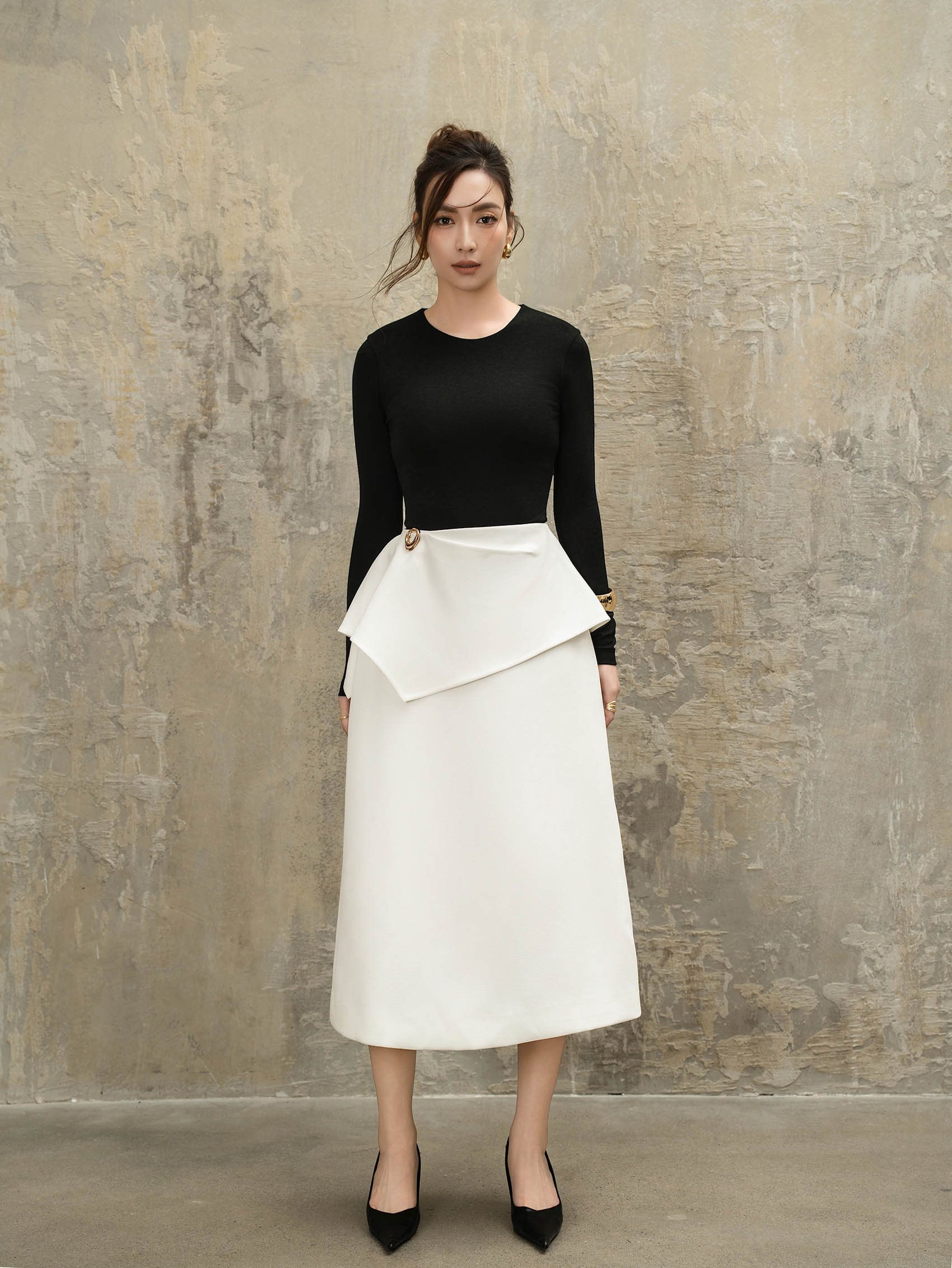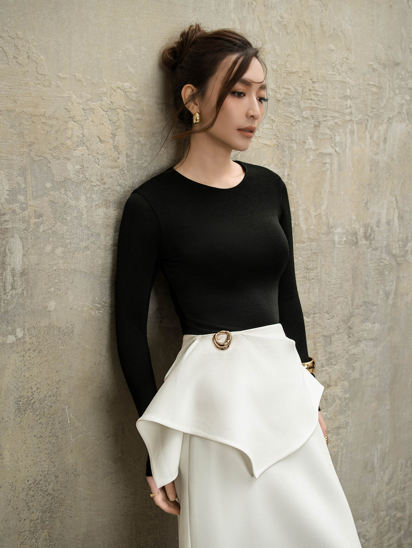 Chi tiết: Áo kiểu body suit, cổ tròn