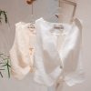 1. Chi tiết: Áo Ghile phối ren hoa mỏng, cổ V khoét sâu