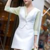 1. Chi tiết: Áo sơ mi dáng suông vừa, tay lỡ che khuyết điểm, cổ V thanh mảnh.
