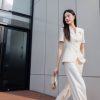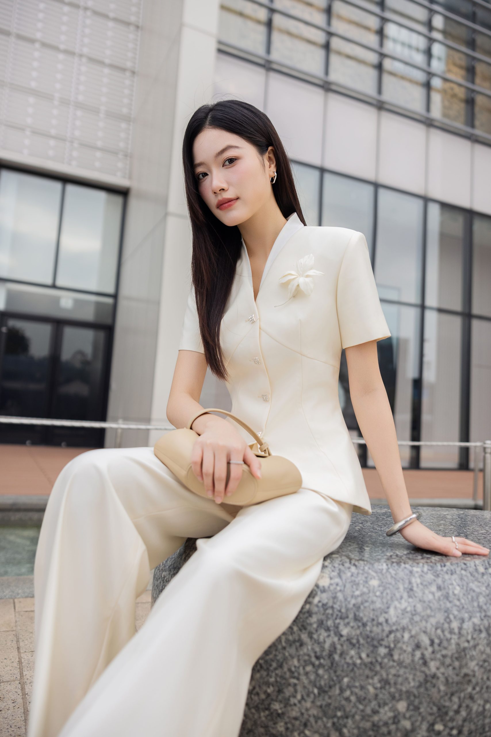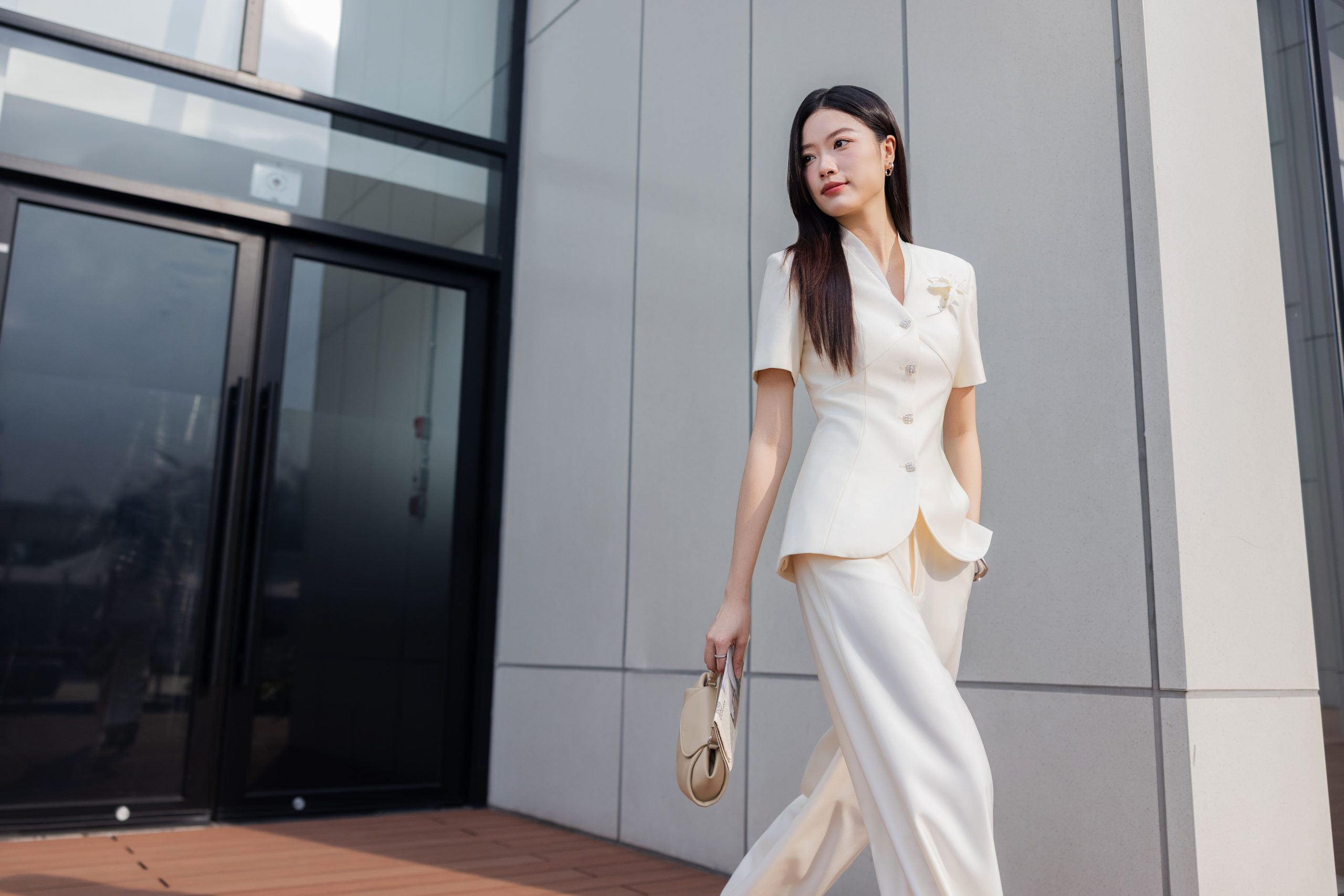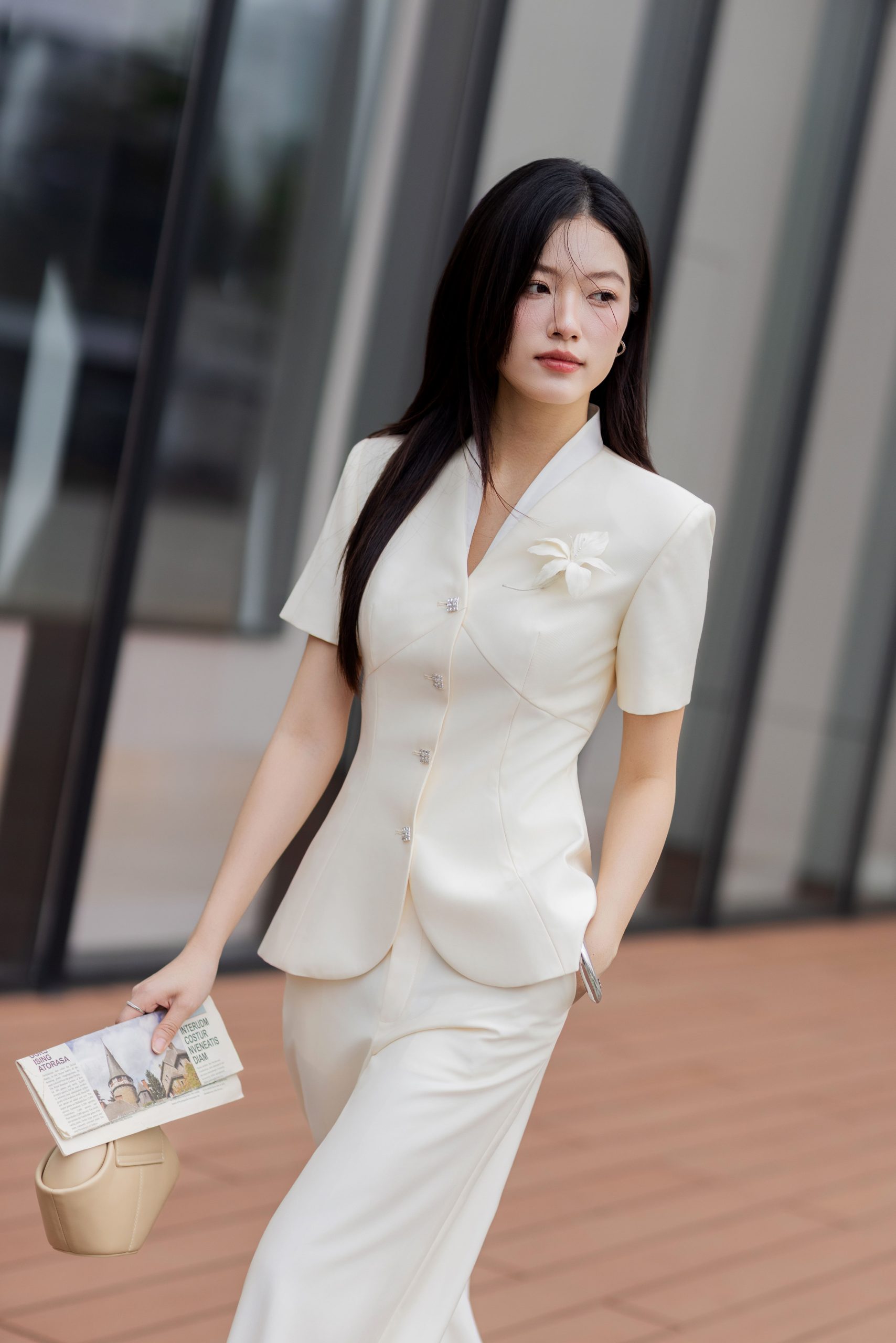 – Hoa cài trên ngực thu hút điểm nhìn vào phần thân trên giúp khách hàng có cảm giác cao hơn