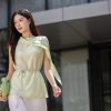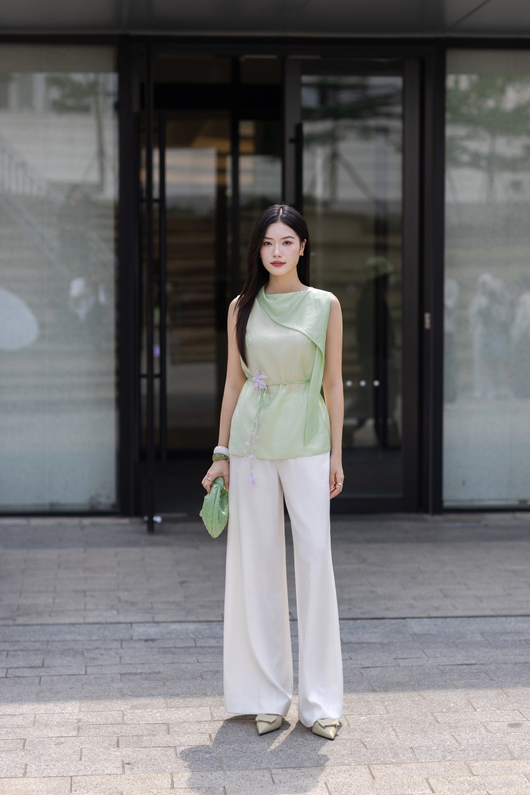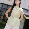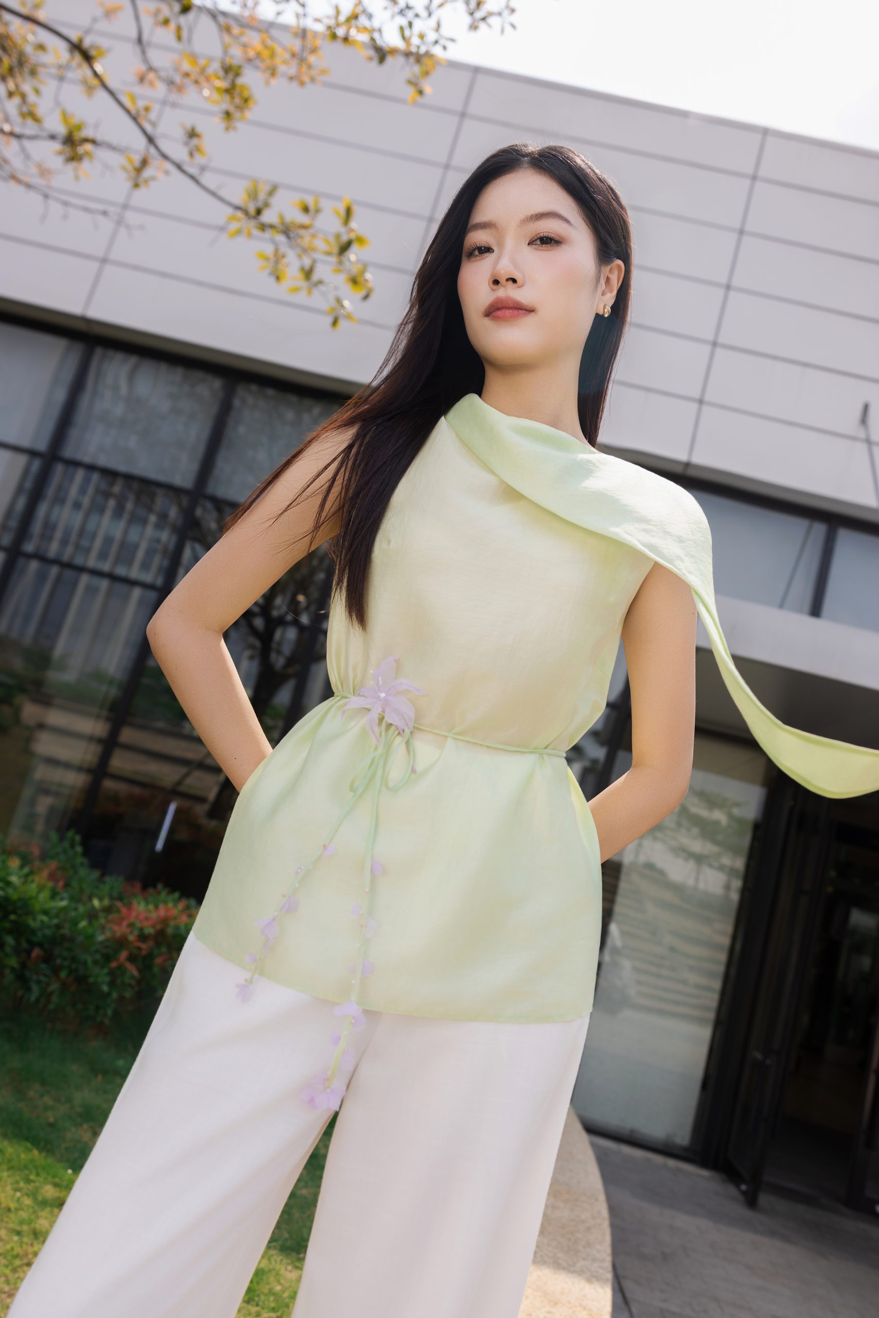 1. Chi tiết: Áo sát nách dáng suông, cổ phối dải dây dài, kèm dây thắt hoa eo tinh tế.