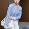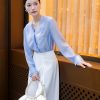 1. Chi tiết: Áo sơ mi dáng suông cổ V, tay dài, chi tiết dây vai vặn xoắn