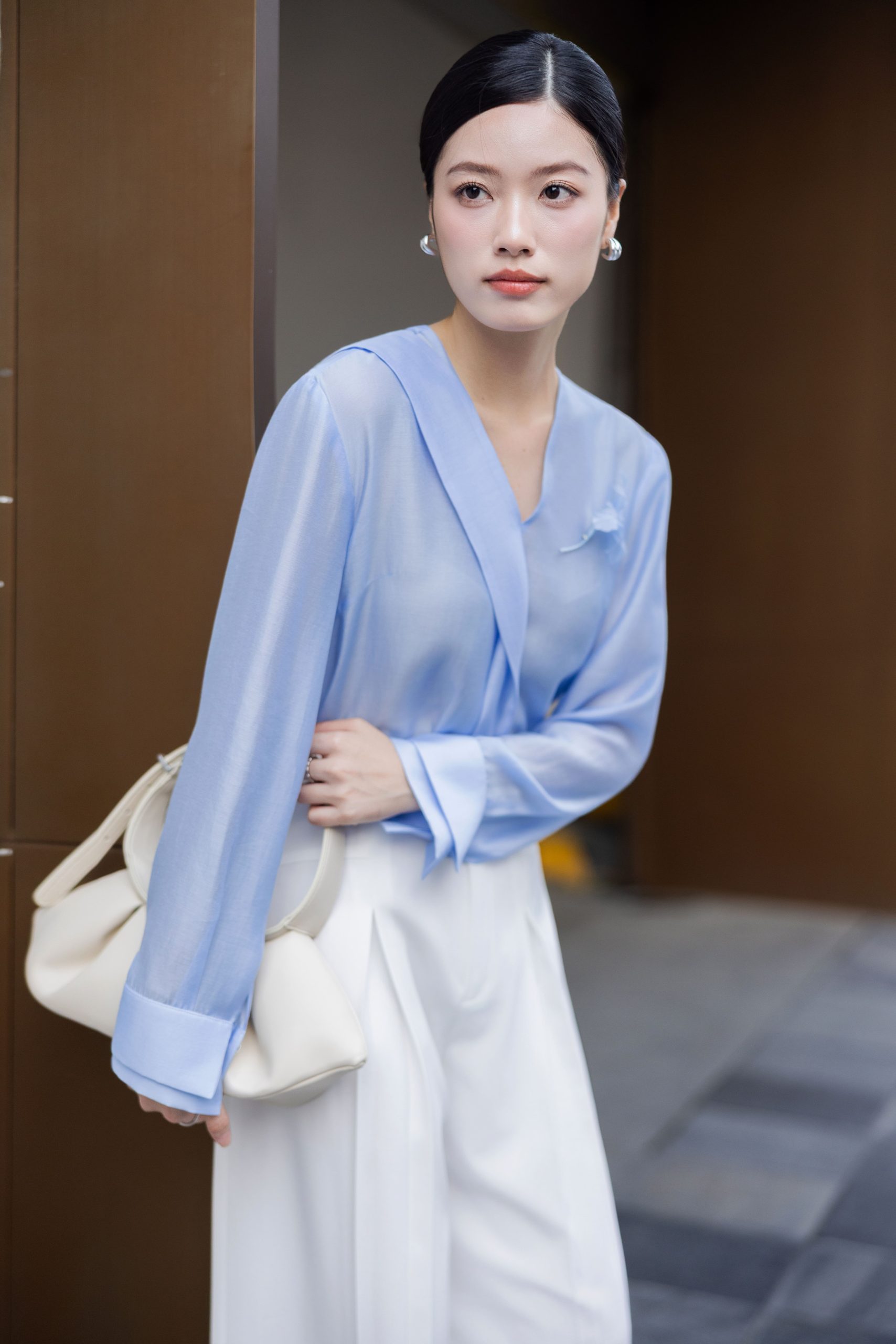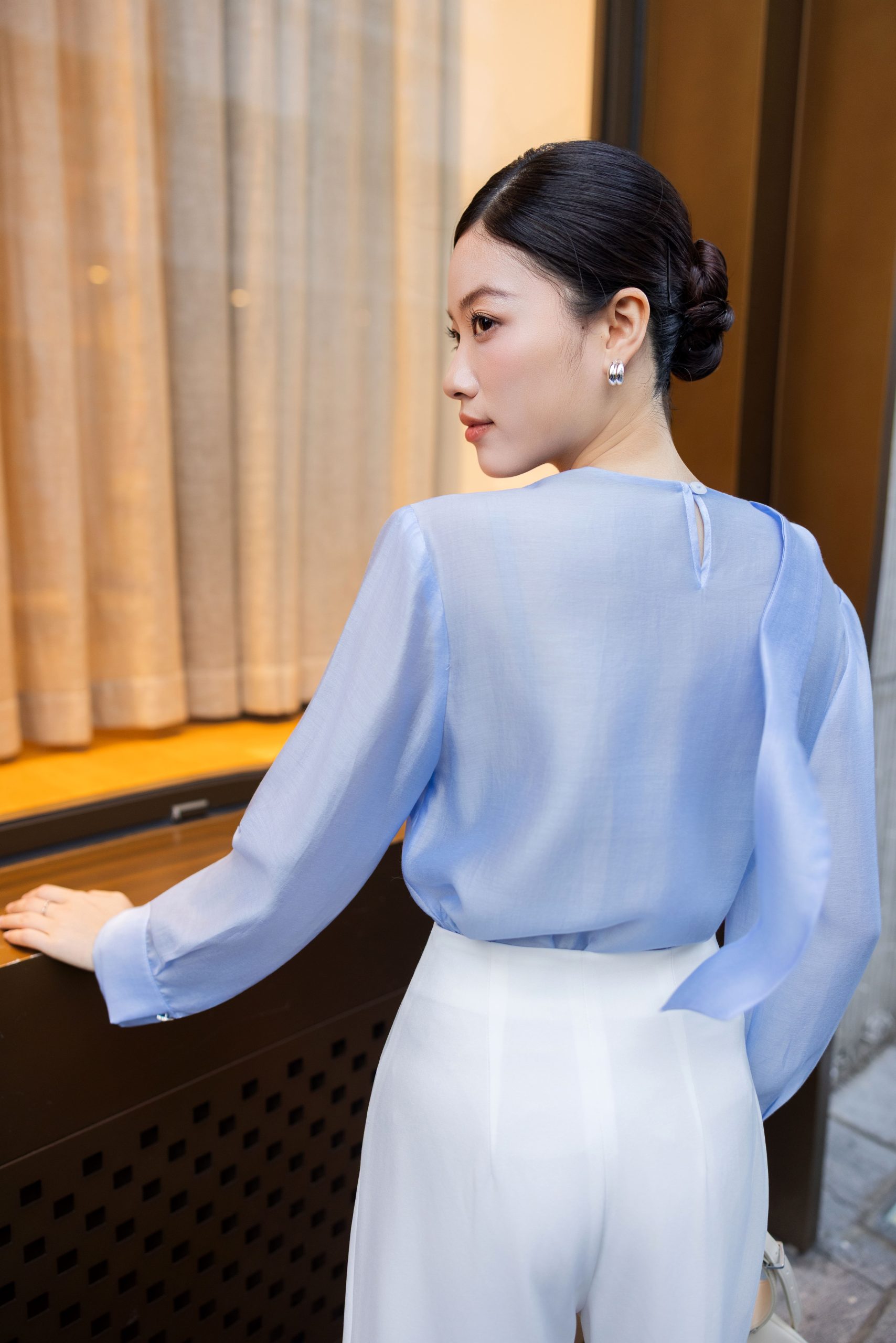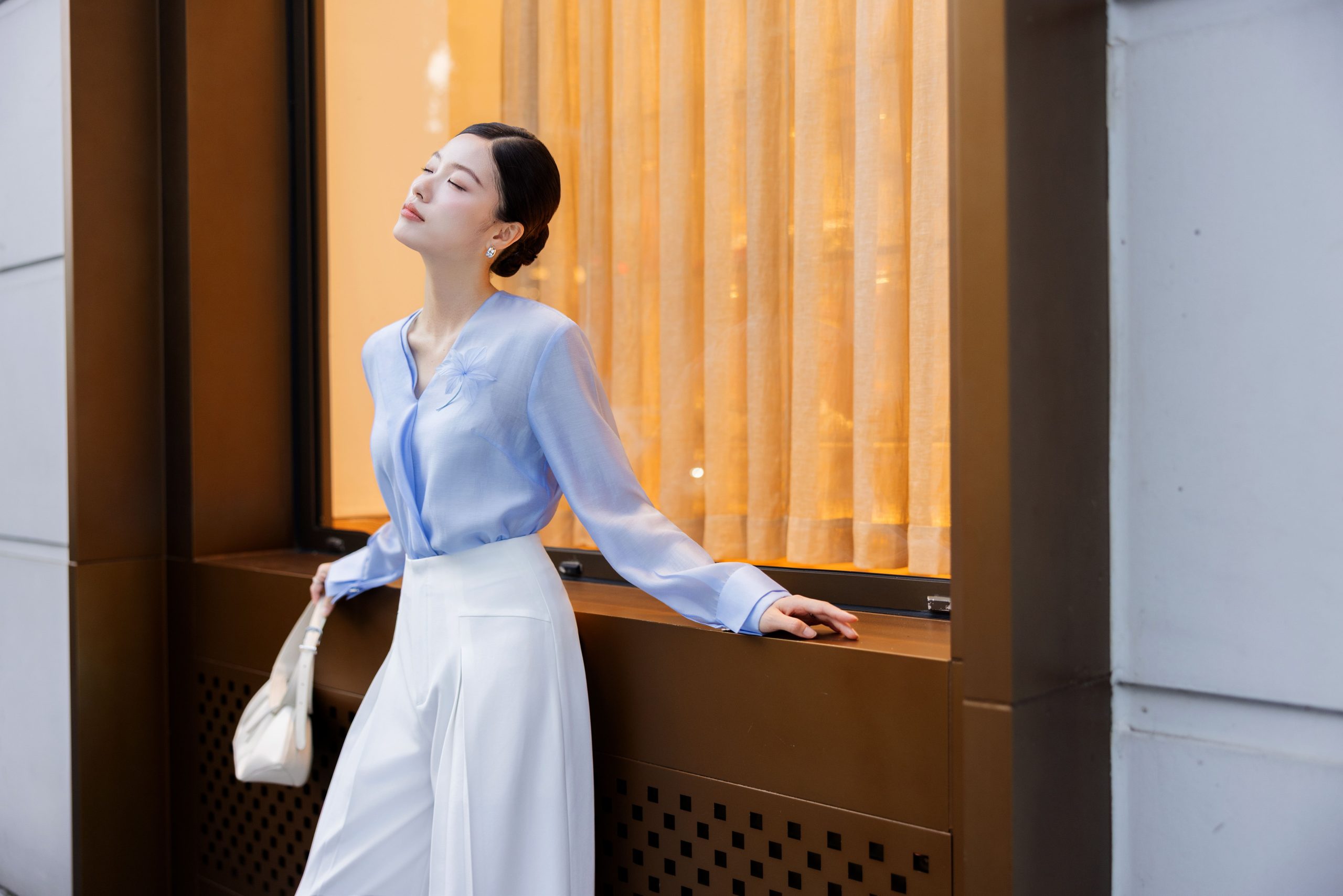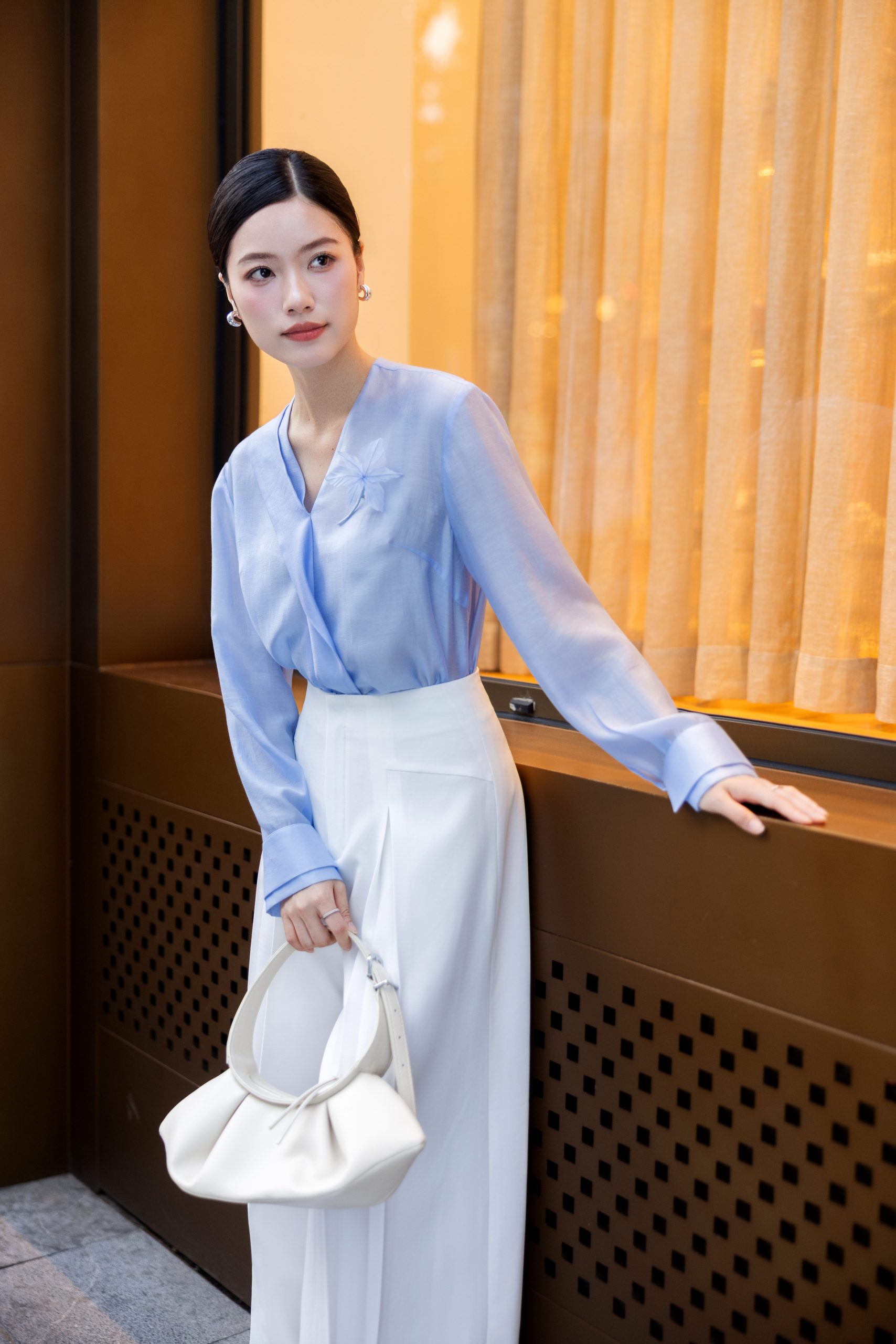 5. Mô tả: Thiết kế cổ V kết hợp cùng chi tiết vặn xoắn cầu vai tạo nên hiệu ứng bay bổng, giúp hướng ánh nhìn lên phần thân trên để tổng thể thêm cao ráo và thoát dáng. Chất liệu tơ Rayon nhẹ tênh không chỉ nâng niu làn da mà còn lưu giữ sự điềm đạm, mang lại cảm giác thoáng đạt và tự tin trong mọi không gian.