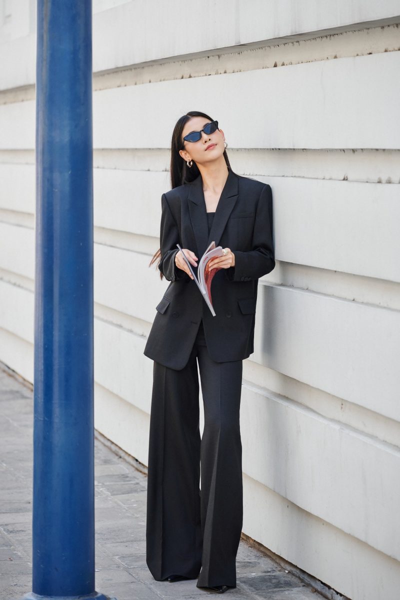- Phong cách hiện đại: Diện suit oversize cùng áo croptop hoặc áo hai dây tinh tế, mang lại sự trẻ trung nhưng vẫn đậm chất thời thượng.